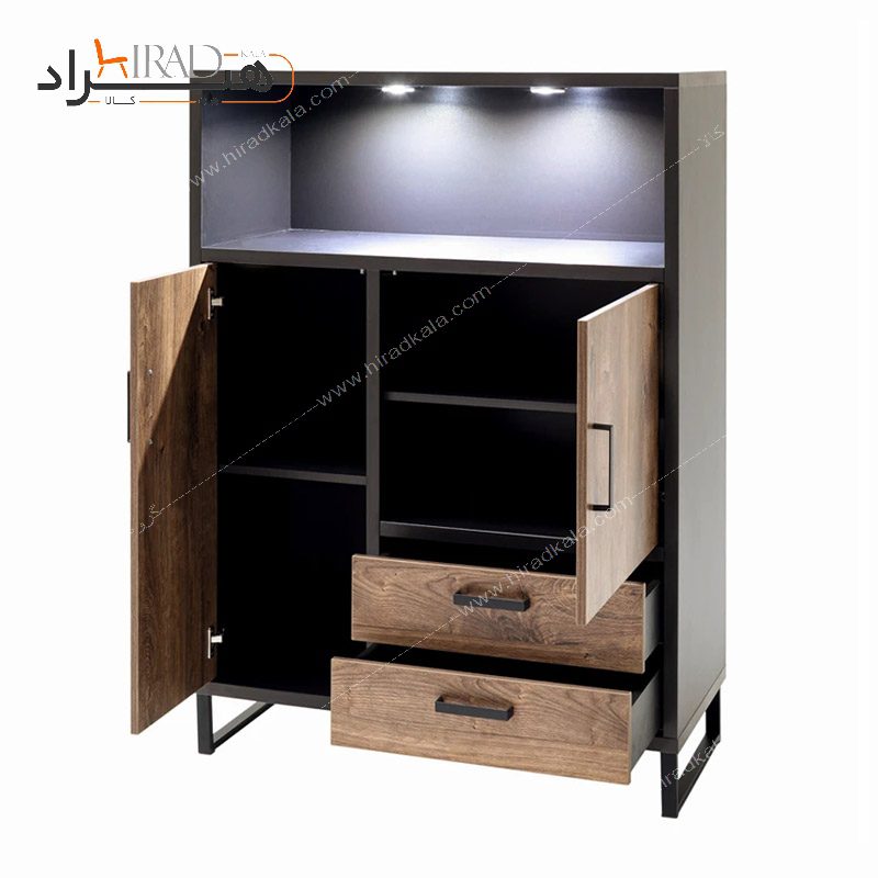 کنسول هیراد مدل B110 دارای کشو و کمد قفسه بندی شده و پایه های فلزی به فضای کمی نیاز دارد تا با تمام توان زیبایی و سادگیش را نشان دهد.