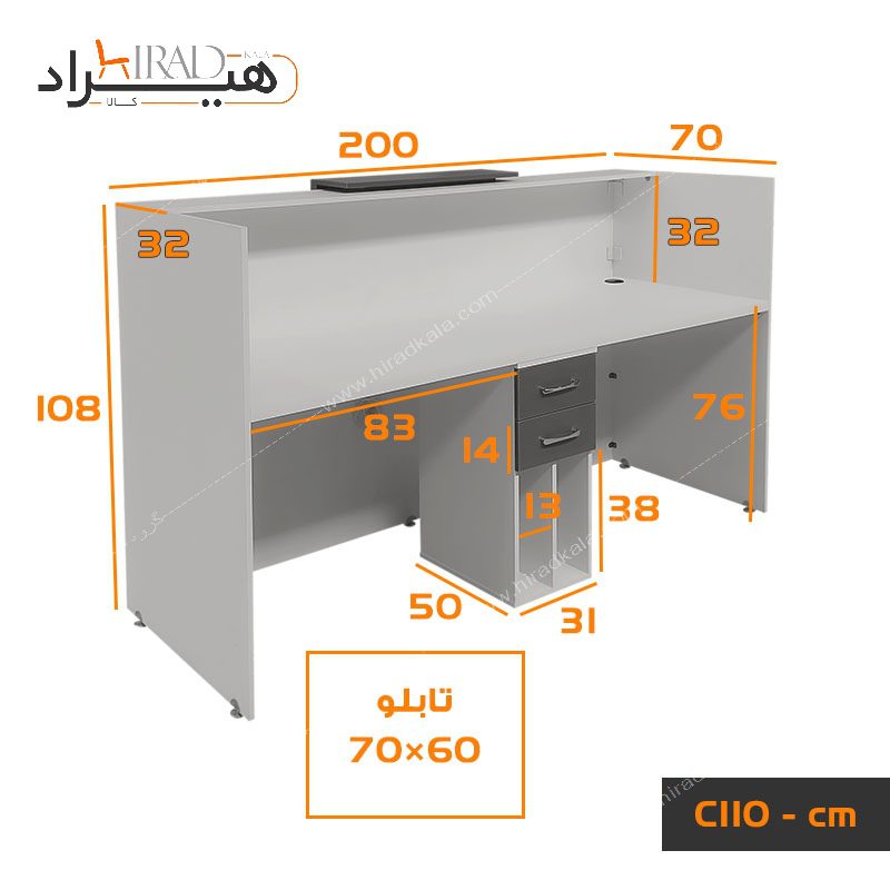 میز کانتر هیراد مدل C110 همان میزهای پیشخوان و پذیرش هستند که می توانند در اداره ها، بانک ها، مطب ها و غیره استفاده شوند. طراحی کانتر اداری باید به گونه ای باشد که ارتباط کارمندان و مراجعه کنندگان را تسهیل کنند. به دلیل اینکه کارکنان معمولاً مدت زیادی از این کانترها استفاده می کنند، باید به شکلی ساخته شوند که در طولانی مدت، موجب ناراحتی و درد برای کارکنان نشود و با توجه به نیاز کارکنان آن شرکت ساخته شوند. میزکانتر معمولاً نیازی به فضای زیاد ندارند و از قیمت مناسبی برخوردار هستند. از میزهای کانتر برای تست محصولات، میزکانتر تبلیغاتی، میزکانتر منشی، میزکانتر فروشگاه، میزکانتر سمپلینگ و … استفاده می شود و بیشتر فرودگاه ها ، فروشگاه ها ، سمینارها و سالن ها ، کلینیک ها ، بیمارستان ها و مطب مورد استفاده قرار میگیرد. میز کانتر هیراد مدل C110 با طراحی مینیمال و ابعاد مناسب و استاندارد و ترکیب دو رنگ، انتخابی مناسب برای شما که می خواهید میز کانتری اقتصادی تهیه کنید.