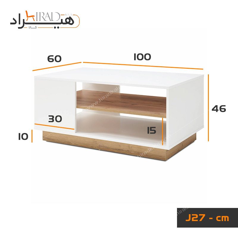 میز جلو مبلی هیراد مدل J27 نوعی میز کشیده و با ارتفاع کوتاه است و به گونه ای طراحی می شود که روبروی مبلمان قرار گیرد. این میز جلو مبلی برای قرار دادن کتاب، روزنامه، مجله، ظروف پذیرایی، لوازم دکوری و مانند آنها که در حین نشستن روی مبل کاربرد دارد، استفاده می شود.