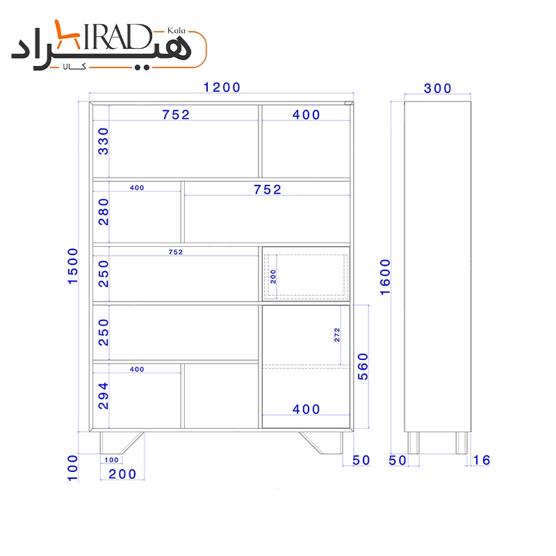 – پایه های کتابخانه هیراد مدل K174 از جنس چوب طبیعی بوده و با رنگ پوشیده شده است.