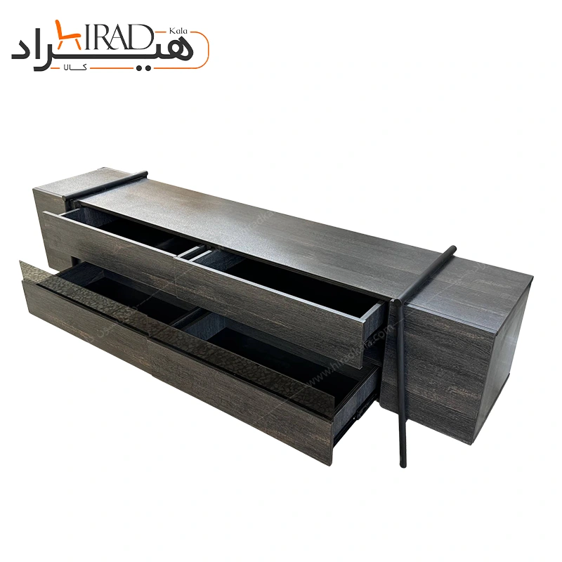 کشوهای عمیق و جادار این میز در اندازههایی یکسان طراحی شدهاند تا فضای کافی برای نگهداری لوازم صوتی، تصویری و دیگر وسایل فراهم کنند.