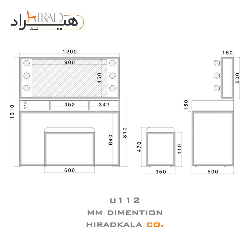 زیبا، ساده، مقاوم و همواره ترند از ویژگی های برجسته میز آرایش هیراد مدل U112 می باشد. سبک طراحی این محصول مینیمال می باشد و همین عاملی هست تا با هر سبک دکوراسیون تطبیق پیدا کند. 3 عدد کشو با ابعاد مناسب که یکی از آنها دارای شبکه بندی می باشد، نیاز شما برای لوازم آرایشی را برطرف می کند . وجود آینه بزرگ به همراه 6 عدد لامپ باعث میشه تا میکاپ خوبی داشته باشید و همواره در اجتماعات بدرخشید. شما می توانید با توجه به دکوراسیون منزل خود، میز آرایش هیراد مدل U112 را با ترکیب رنگی دلخوله سفارش دهید.